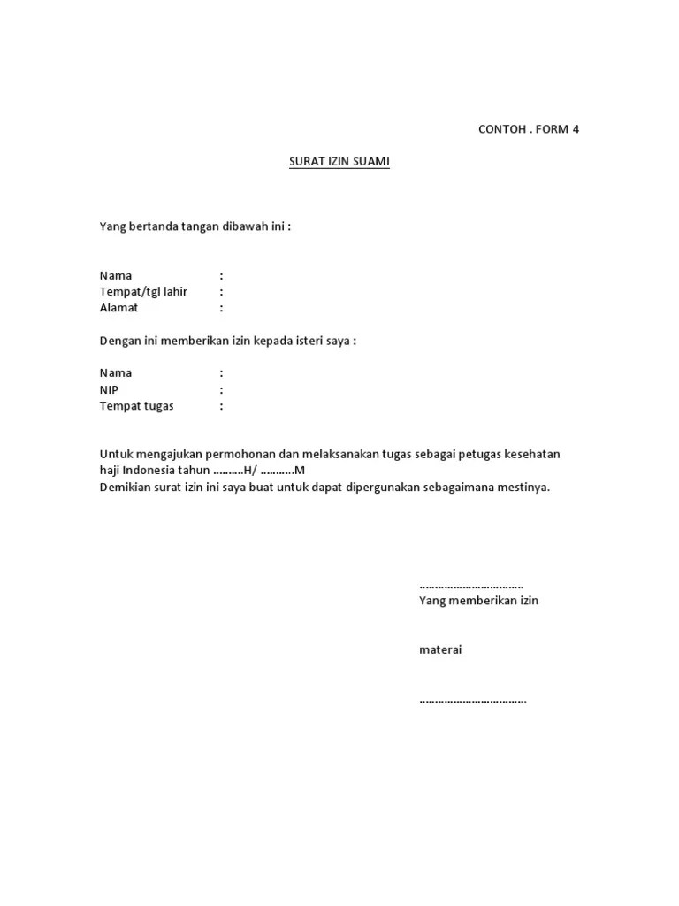 Contoh format surat izin bekerja ke luar negeri yang. Kemudian, ia meminta izin akan main di rumah teman selepas tarawih hingga selesai. Dengan ini menyatakan setuju/ tidak setuju suami/istri/anak kami, untuk mengikuti pendidikan di program studi pendidikan dokter spesialis i radiologi fkub . Dengan ini memberikan izin kepada . Form 3 surat izin suami/orang tua/wali yang bertanda tangan dibawah ini : Dengan ini memberikan ijin kepada suami/ istri . Lpdp, format surat izin belajar, blankfull description. Surat izin orang tua/wali/suami/istri pada hari ini kamis tanggal tiga bulan agustus tahun dua ribu tujuh belas. Saya yang bertanda tangan dibawah ini: Pria ini juga menulis calon suami di kolom jabatan. Mohon ditambahkan format surat keterangan izin orangtua/suami/istri #259. Yang bertanda tangan di bawah ini, saya selaku (suami/ istri / orang tua). Surat pernyataan persetujuan suami/istri saya yang bertanda tangan dibawah ini (suami/istri) :